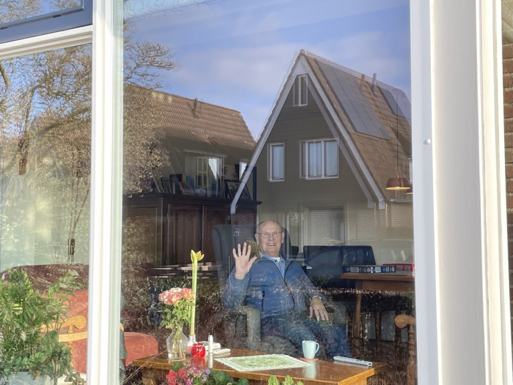 ‘Wie is die man eigenlijk?’ vroeg ik me de afgelopen vier jaar bijna dagelijks af als ik vanuit mijn huis het dorpscentrum in fietste. Het is een vast ritueeltje geworden: even een blik werpen op zijn erker aan de Hoofdstraat en hij steekt zijn hand al op – ik ook – alsof we oude bekenden zijn. Omdat ik niet wist hoe hij heette, noemde ik hem in mijn eigen hoofd ‘de zwaaier’. Tot vorige week: toen besloot ik de stoute schoenen aan te trekken en eens aan te bellen.