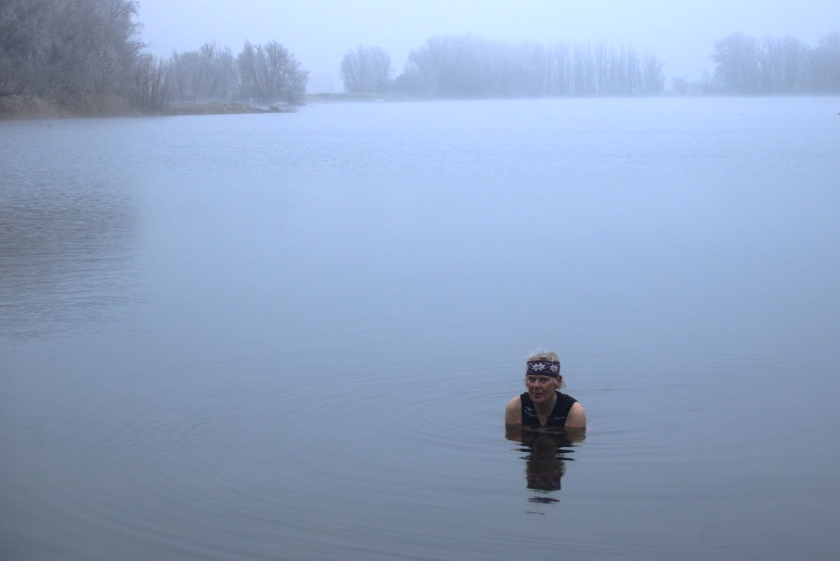 Anita ‘dipt’ elke zondagochtend in het Huissense Zwanenbad. © Anne Veens