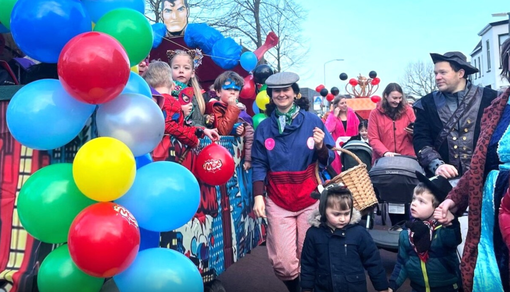 Jona en ik bij de carnavalsoptocht van de Dr. Lammerts van Buerenschool en de Okkernoot in ’t Lingegat © Anne Veens