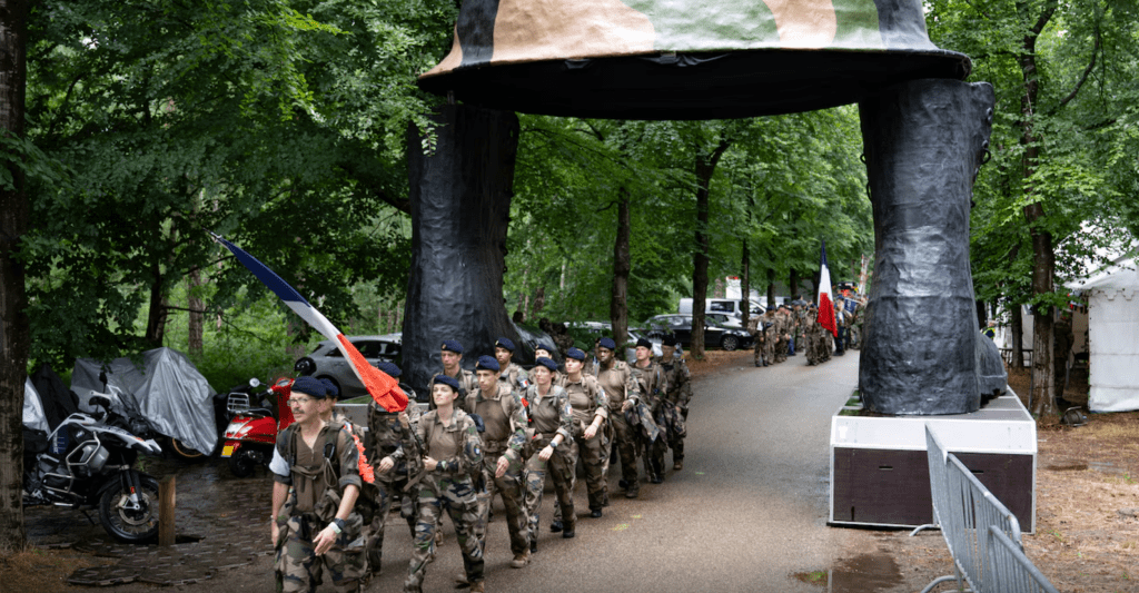 Voor de militairen zit er weer een etappe van 40 kilometer op. Althans, nog nét niet helemaal. De officiële intocht eindigt namelijk in de feesttent, die ze trots en in mars betreden. Binnen barst het los: er wordt gejuicht en gedanst. Élke dag weer, op het laatste beetje energie.